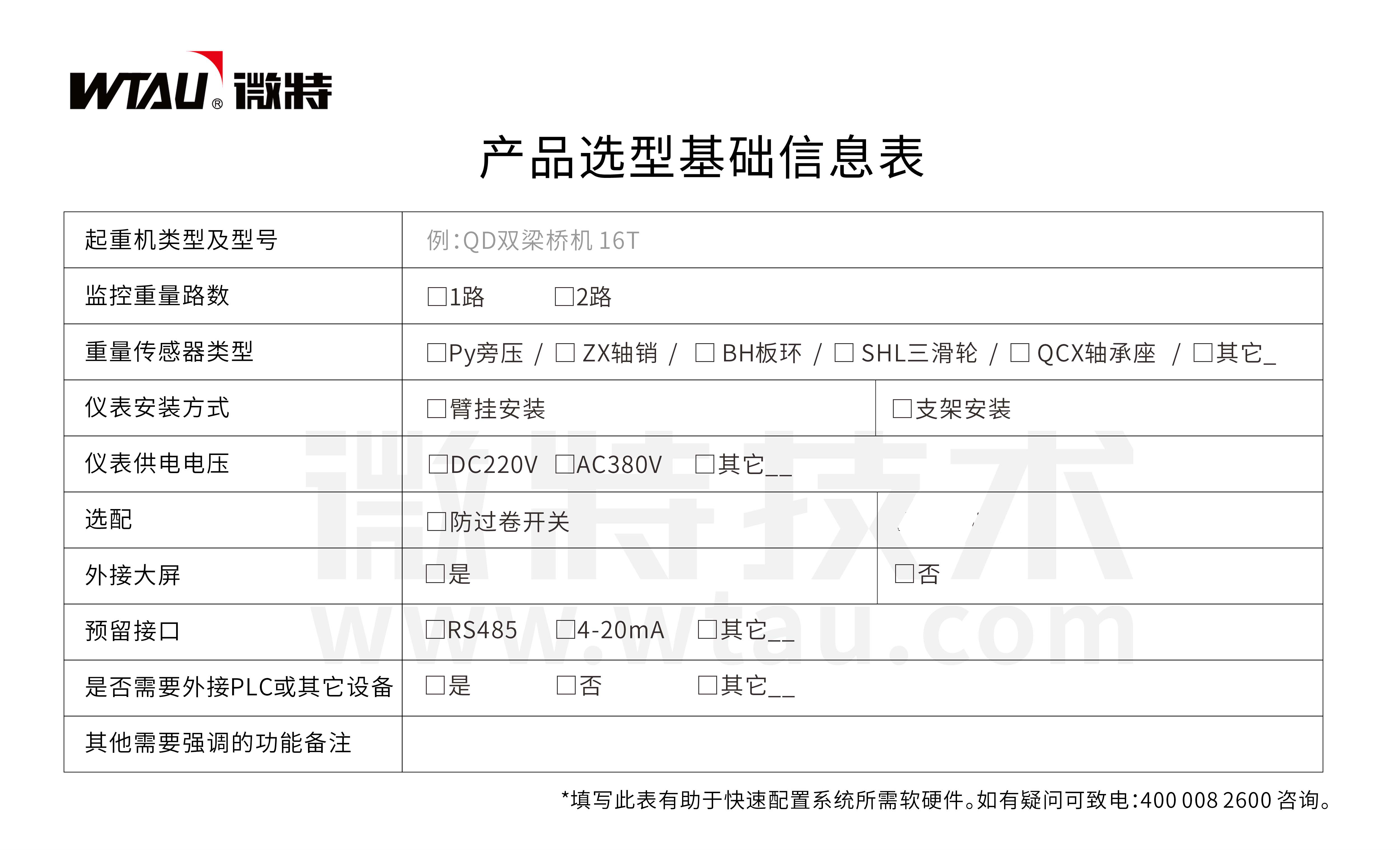 WTZ-A200起重量限制器(超載限制器)適用于各類橋門式起重機(jī),如:通用橋式起重機(jī)、龍門吊、單雙梁橋機(jī)(天車、行車)、機(jī)械立體停車庫等。
