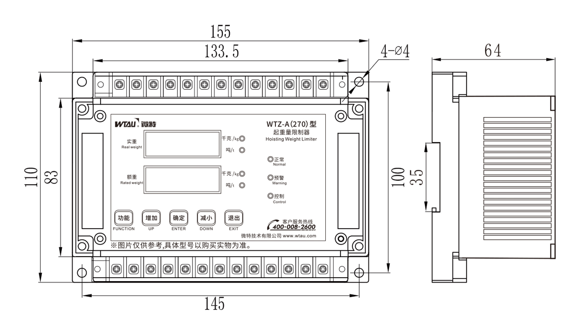 WTZ-A270型起重量限制器具有結構合理、安裝方便、調試操作簡單、工作可靠、精度高等一系列優點。