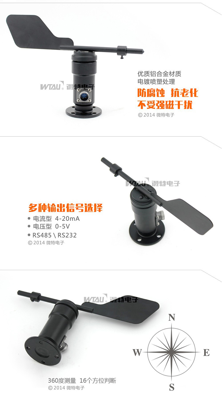SC/FX風向傳感器采用優質鋁合金型材質,外部進行電鍍噴塑處理,具有防雨、防腐蝕、抗老化、抗強磁場干擾能力。該傳感器可測量室外環境中的風向,測量分東、西、南、北、東南、西南、西北、東北等十六個方向,具有很高的性價比。該儀器廣泛應用于環保、氣象、農業、林業、水利、建筑、科研及教學等領域。