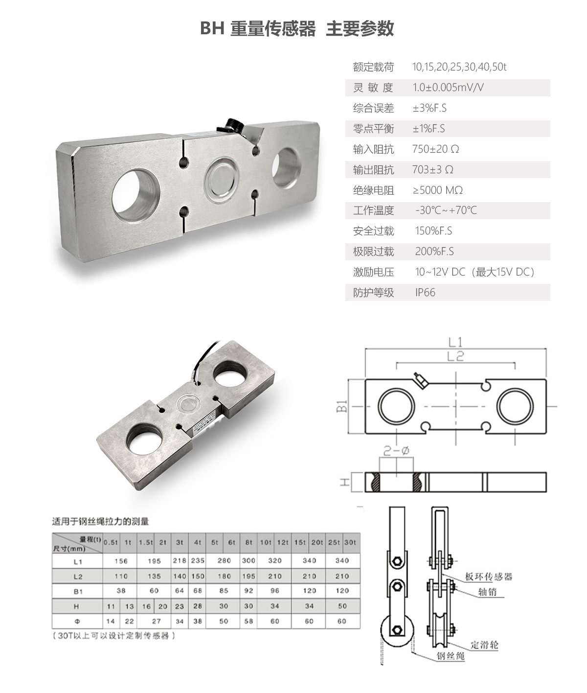 BH板環重量傳感器適用于鋼絲繩張力測量。