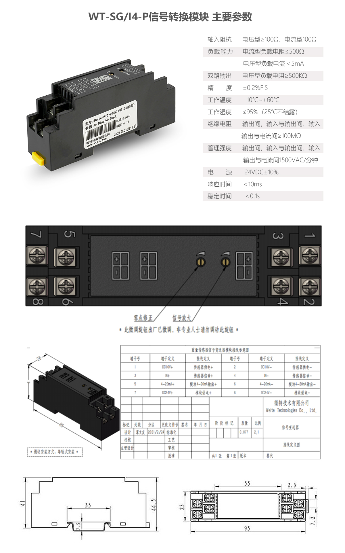 WT-SG/I4-P信號轉換模塊常用于各類傳感器的信號轉換。