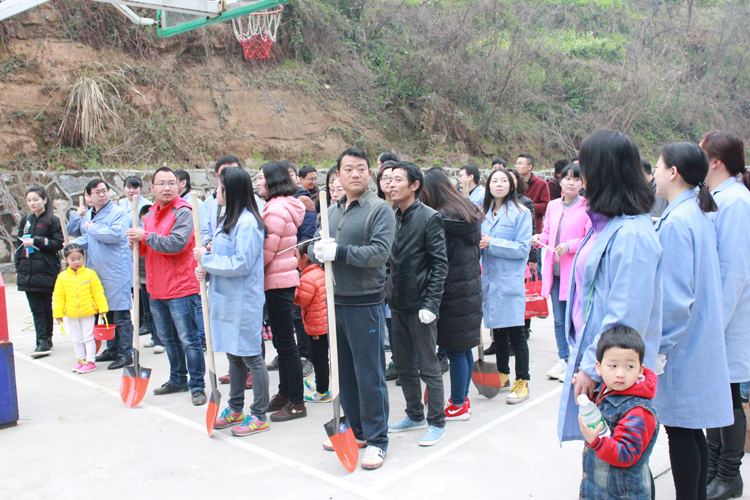 上午8:30,微特電子員工及員工家屬在后山籃球場集合,分發植樹工具及小樹苗。