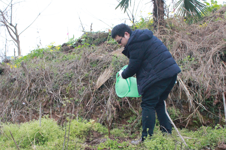 為自己種的小樹苗掛上屬于自己的小牌,澆上水,培好土,讓自己的責任樹茁壯成長
