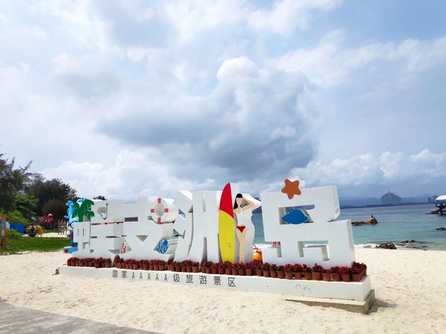 蜈支洲島東、南、西三面皆為陡峭山勢,只得北面這一彎淺灘,下午短暫的時間還未欣賞到島上所有的風景,讓人流連忘返留有一絲念想的地方,離開前與我們的小伙伴最后不舍的感受了下海濱浴場沙灘,與大海親密的接觸嘗了嘗大海的味道,小伙伴說怎么感覺比鹽還咸,這就對了,這才是大海的味道。