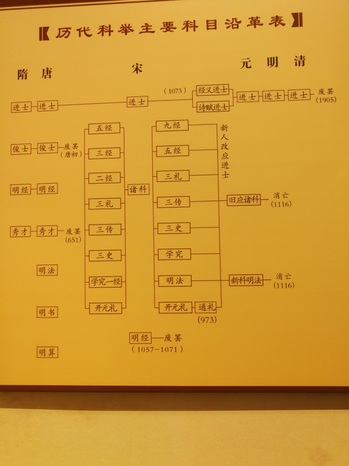 到圣旨殿堂感受圣賢人文歷史墨寶中國文字的博大精深學習的力量。下面就是歷代科舉的科目表,旁邊還有可舉試題的批發原文,“圓圈”代表優,“、”代表好。