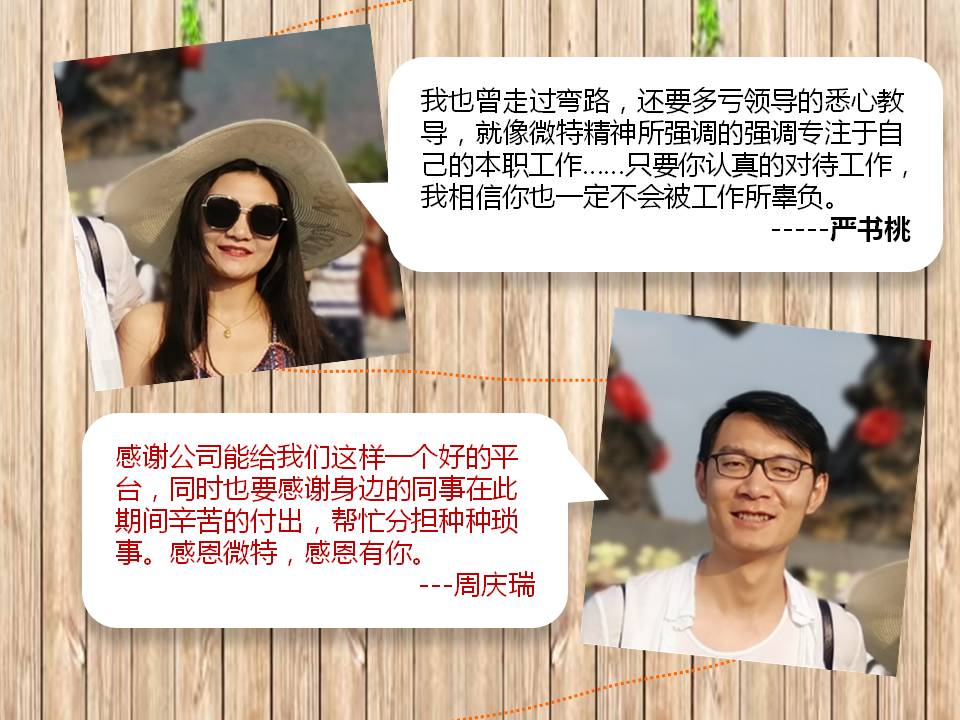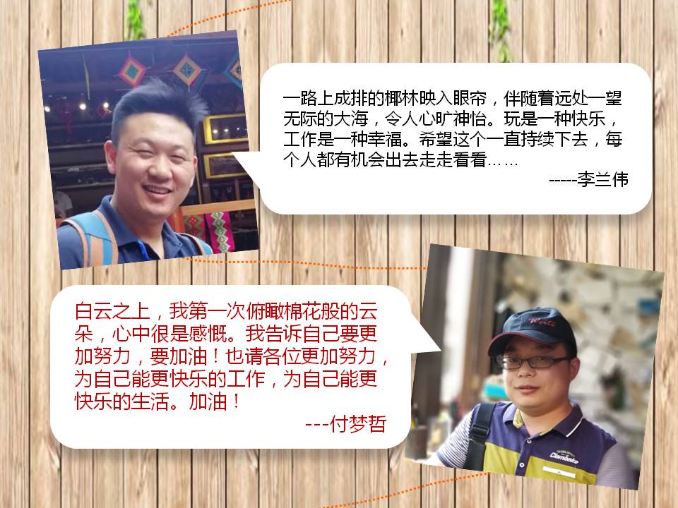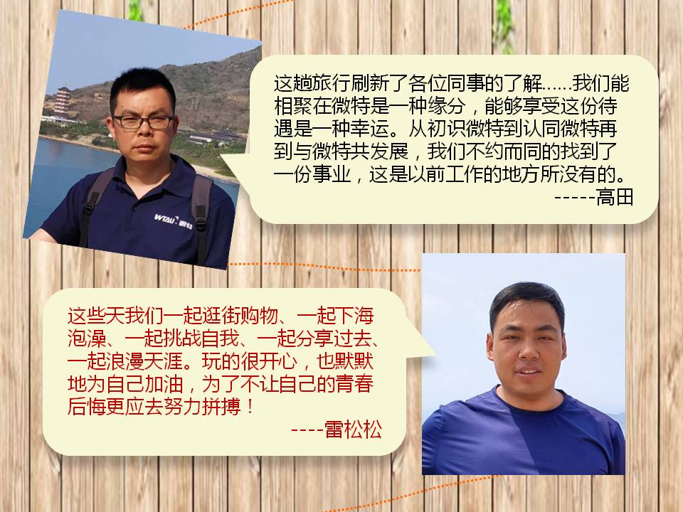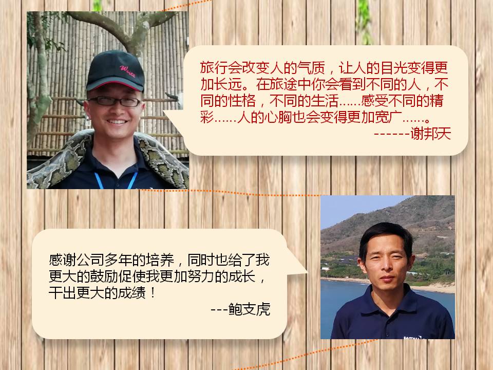 微特為2018年工作表現優秀的15名員工給出了特別驚喜的獎勵-雙飛6日海南游獎勵,很有幸也很高興本次被評為優秀員工,非常感謝公司領導的多年的培養,同時也給了我們更大的鼓勵和激勵,促使我們更加努力更快的成長,干出更大的成就!