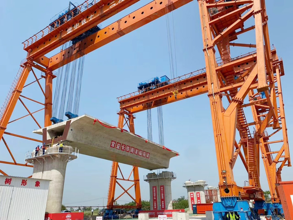 2016年4月,隨著長32.6米,重達714.8噸的箱梁穩穩的落在墩柱上,中鐵十四局順利完成連淮揚鎮鐵路全線首榀箱梁架設。而這次承擔首架任務的跨線式提梁機,安裝的安全監控管理系統正是由微特配備的。2017年微特再次為連淮揚鎮鐵路高郵及廣陵段搬梁機配裝安全監控系統。
