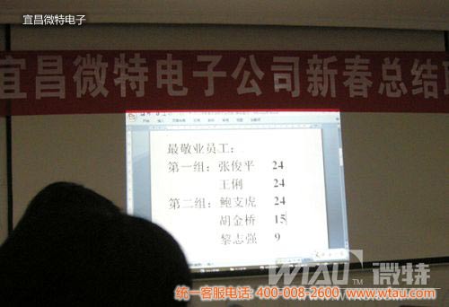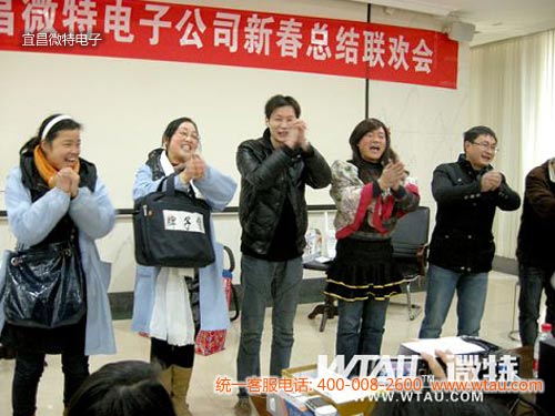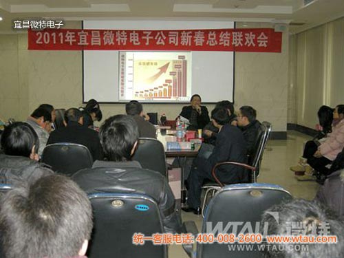 2011年1月30日,微特電子2010年總結大會暨新春聯歡會在宜昌高新技術開發區創業園勝利召開。公司領導與全體同仁共聚一堂共賀新春佳節,總經理聶道靜帶領各部門主管分別做了年度總結及簽署了新年工作目標責任書。2010年微特電子在全體同仁的共同努力下創下了良好的經營業績,展望2011年,微特人有信心創造出更加輝煌的業績。